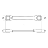 Rif. Beta 001950210 ÷ 001950219. Articolo Beta 195P. Chiavi poligonali doppie piegate a cricchetto reversibile. Testa piegata di 15°.Angolo di ripresa 5°.