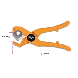 Rif. Beta 003420030. Articolo Beta 342. Tagliatubi a cricchetto per plastica. Funzionamento a cricchetto. Pulsante di sgancio.