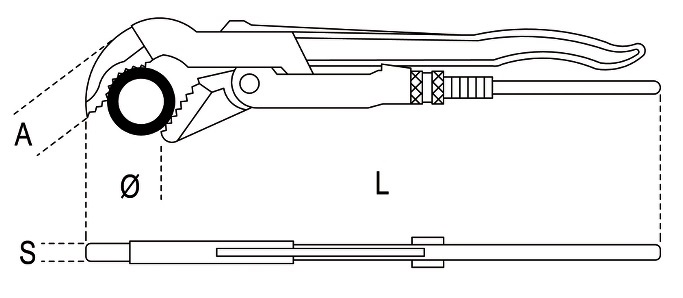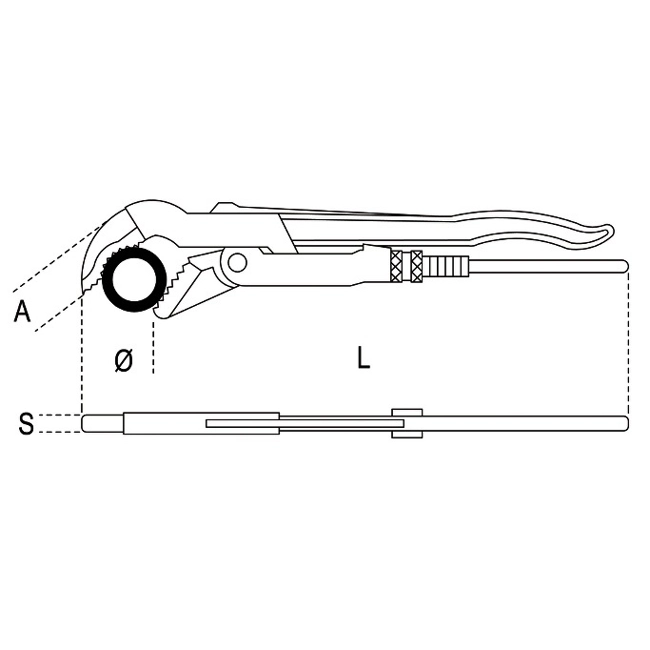 Rif. Beta 003750032 ÷ 003750055. Articolo Beta 375. Giratubi modello svedese con ganasce parallele a 45°. Robusta struttura nervata in acciaio legato per manovre di grande potenza. Acciaio forgiato. DIN 5234