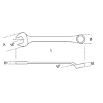 Rif. Beta 000450046 ÷ 000450080. Articolo Beta 45. Chiave combinata tipo pesante. A forchetta e poligonale piegata. Cromata.