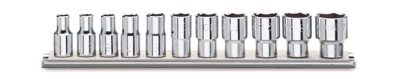 Rif. Beta 009200295. Articolo Beta 920A-AS/SB11. Serie di chiavi a bussola a mano, lunghe, cromate, art.920A/AS. Bocca esagonale.
