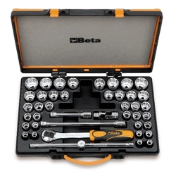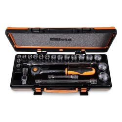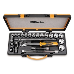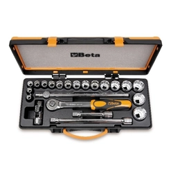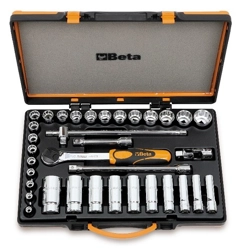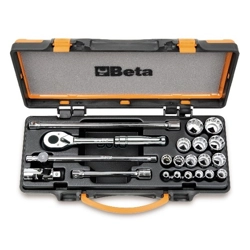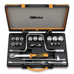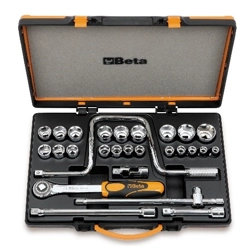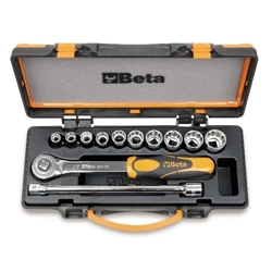 Rif. Beta 009200933. Articolo Beta 920A/C12X. Assortimento di: n.12 chiavi a bussola esagonali n.5 accessori Contenuto della confezione n.12 chiavi a bussola a mano, bocca esagonale da 10 - 11 - 12 - 13 - 14 - 17 - 19 - 22 - 24 - 27 - 30 - 32 mm., art.920A n.1 prolunga con attacco quadro maschio e femmina 1/2", L 125 mm., art.920/21 n.1 prolunga con attacco quadro maschio e femmina 1/2", L 255 mm., art.920/22 n.1 snodo con attacco quadro maschio e femmina 1/2", art.920/25 n.1 quadro maschio 1/2" con spina scorrevole, art.920/42 n.1 cricchetto reversibile, con attacco quadro maschio 1/2", art.920/55
