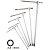 Rif. Beta 009510687. Serie di 6 chiavi a T con tre estremità maschio esagonale cromate. Estremità superiore scorrevole e posizionabile nella posizione desiderata. Finitura lucida cromata.