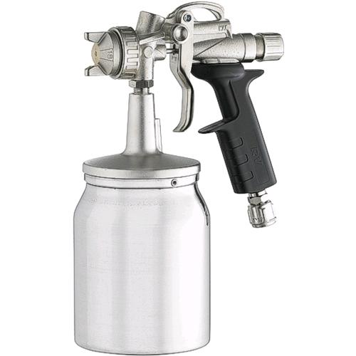 Pistola di verniciatura compatta e maneggevole, particolarmente robusta e di facile manutenzione. Il serbatoio inferiore in alluminio da 1000 cc, è caratterizzato dalla chiusura a pressione in nylon con dispositivo salvagocce. Con ugello da 2,5.