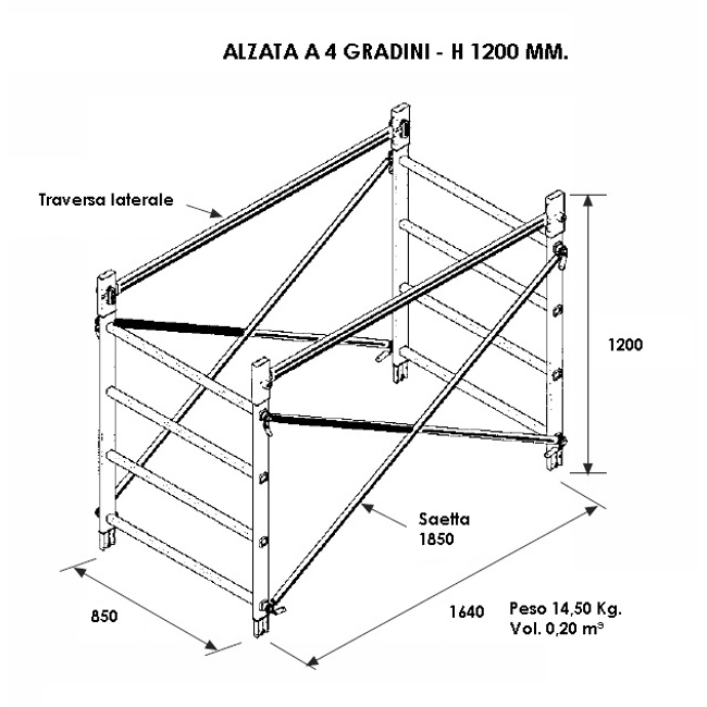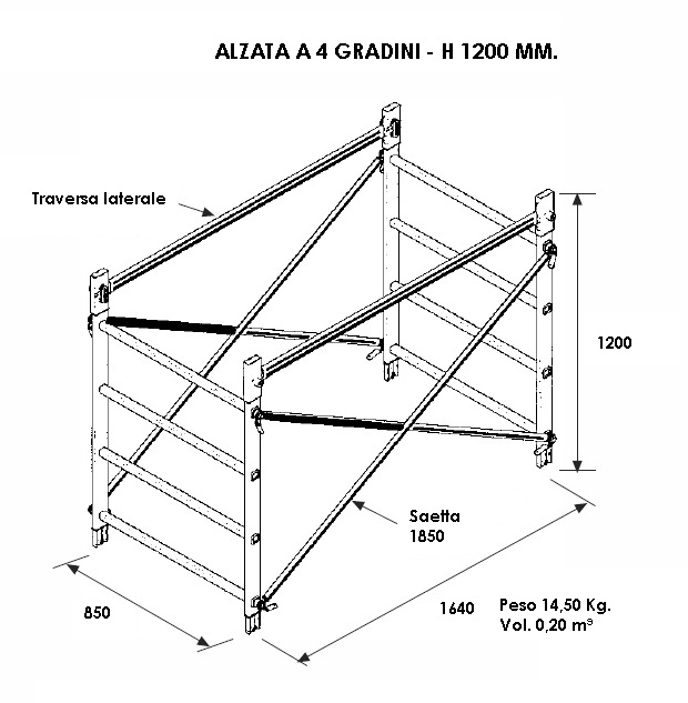 Rif. Facal D652. Componente principale per Trabattello DOGE65. Composta da: n.2 spalle a 4 gradini - 850x1200 mm. (LxH) n.2 traverse laterali n.4 saette da 1850 mm.