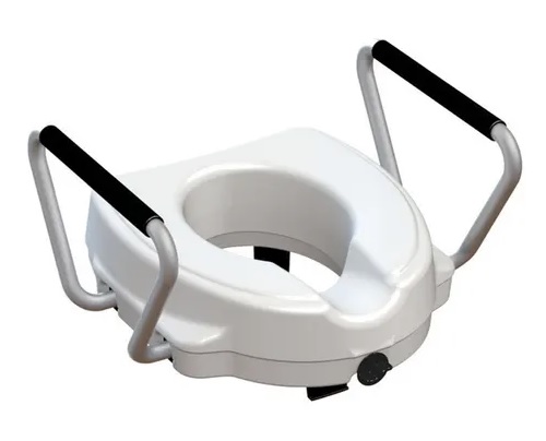 Alzawater realizzato in HDPE, PA6, Neoprene, alluminio - Codice articolo ES-11-12-KD. Il polietilene ad alta densità con il quale è realizzato, offre robustezza e durabilità. Il copriwater aumenta l'altezza del water di 12,5 cm. ed è ideato per chi ha difficoltà a sedersi o alzarsi. Dotato di braccioli fissi in alluminio anodizzato, rivestiti in neoprene. Saldamente fissato sul bordo del water tramite un meccanismo di staffe posteriori e vite anteriore in nylon per blocco regolabile. Adattabile a tutte le tipologie di water più diffuse. Superficie della seduta lucida e facilmente pulibile, studiata per garantire un miglior posizionamento del bacino e distribuzione del peso corporeo. Con leggera inclinazione per una minore flessione delle articolazioni e per aiutare l'utilizzatore ad alzarsi più agevolmente. Seduta con un'apertura anteriore, per dare accessibilità all'igiene personale.