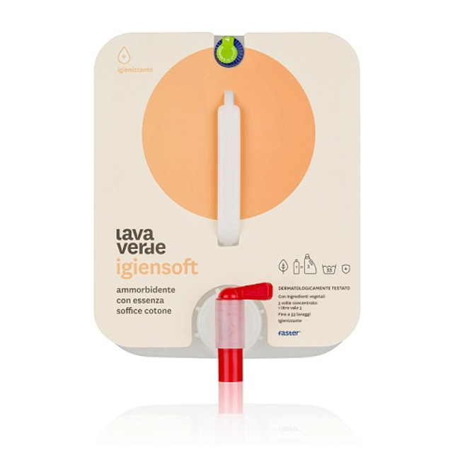 Lavaverde Igiensoft - Ammorbidente igienizzante ipoallergenico.Ammorbidente alla spina concentrato igienizzante studiato appositamente per eliminare le residue cariche batteriche presenti dopo il normale lavaggio e inibire la formazione di odori sgradevoli.Il suo effetto ipoallergenico, testato dall'Università di Ferrara, riduce al minimo l'insorgere di allergie ed è ideale per pelli molto sensibili.Ideale per indumenti di neonati, intimi, asciugamani, lenzuola.Igienizza i capi e dona una straordinaria morbidezza, lasciando un delicato e persistente profumo di pulito.Contiene tensioattivi di derivazione esclusivamente vegetale. Disponibile anche nel formato da 15 litri in tanica