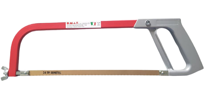 Seghetto per metallo con lama - Codice 0130/1LArchetto fisso per lama da 12'' in tubo rettangolare.Attacchi quadri mm 12 - tagli a croce sottili.Impugnatura anatomica in alluminio, comoda ed elegante.