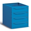 Realizzato in lamiera verniciata. Facilmente installabile nella parte inferiore del banco per poter organizzare le diverse attrezzature per il lavoro. Composto da n.4 cassetti (H utile interna 92mm.). Con serratura a chiave.Portata per ogni cassetto 25 Kg. Disponibile anche nella versione grigio RAL7035+RAL7016 (FBG03S50C0003PD)