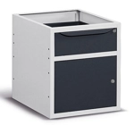 Realizzato in lamiera verniciata. Facilmente installabile nella parte inferiore del banco per poter organizzare le diverse attrezzature per il lavoro. Composto da:n.1 cassetto (H utile interna 137mm.), con serratura a chiave.Portata cassetto 25 Kg. n.1 porta H 310 mm., con serratura a chiave.SENZA FONDO DI CHIUSURA (da utilizzare solo negli armadi con porta quando è presente il semipiano).Disponibile anche nella versione grigio RAL7035+RAL7016 (FBG03S50C0004PD)