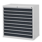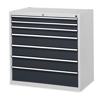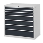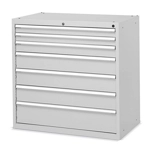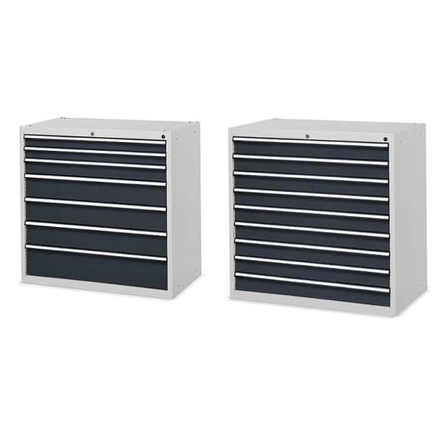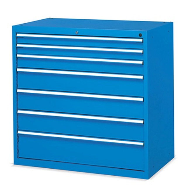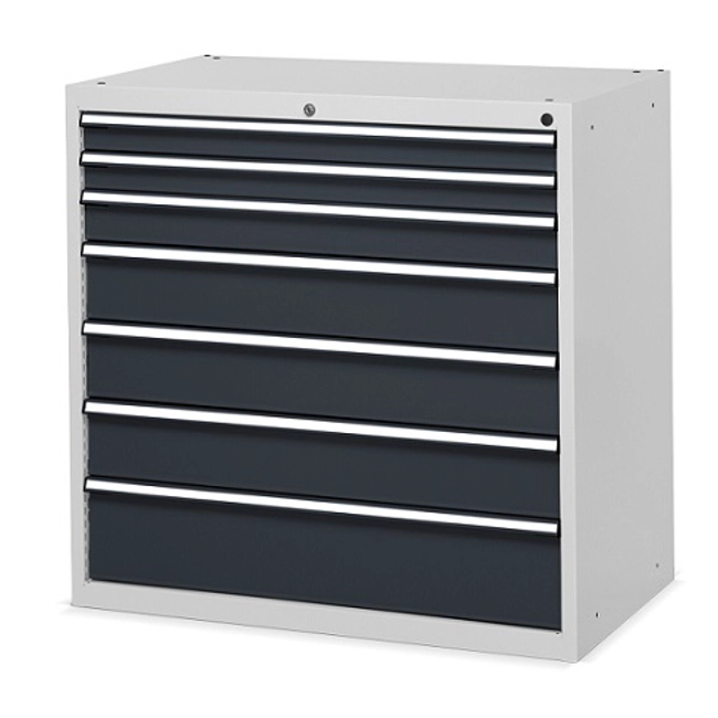 La cassettiera Flexa è la soluzione compatta e versatile per l'organizzazione di utensili ed attrezzatura. 7 o 9 cassetti ad estrazione totale. Cassetti con altezze diverse per adattarsi alle diverse dimensioni del materiale da contenere. Cassetti con fondo forato e i lati fessurati per facilitare l'inserimento dei divisori per l'organizzazione dello spazio interno. La cassettiera è dotata di meccanismo di apertura singola dei cassetti per evitarne il ribaltamento ed è predisposta per il fissaggio a pavimento o a parete, Serratura centrale con chiave.