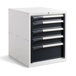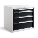 BREVETTATO. Realizzato in lamiera verniciata. Facilmente installabile nella parte inferiore del banco per poter organizzare le diverse attrezzature per il lavoro. Composto da n.4 cassetti (n.1 H75 mm. – n.2 H150 mm. - n.1 H200 mm.). L’estrazione e la relativa portata può essere impostata autonomamente dall'utente:-portata 50 Kg.: estrazione 100%-portata 75 Kg.: estrazione 96%-portata 100 Kg.: estrazione 92%