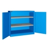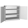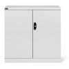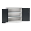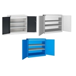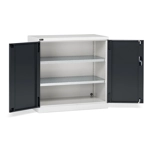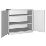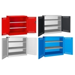 Solida struttura in lamiera di metallo. Porte a battente, dotate di serratura a chiave. Profili a cremagliera per l’inserimento di piani opzionali. n.2 piani fessurati, regolabili in altezza. Due intagli sulla lamiera, nel retro, permettono all’occorrenza di creare dei fori passacavo.