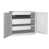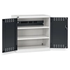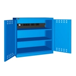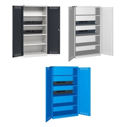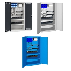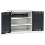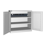 BREVETTATO. Solida struttura in lamiera di metallo. Porte a battente fessurate, dotate di serratura a chiave. Profili a cremagliera per l’inserimento di piani opzionali. n.2 piani fessurati regolabili in altezzan.1 canaletta elettrica per multipresen.1 magnetotermico differenzialen.1 multipresa Schuko a 4 scompartin.2 multiprese Schuko a 2 scompartin.1 cavo collegamento Wieland Schuko/FRDue intagli sulla lamiera, nel retro, permettono all’occorrenza di creare dei fori passacavo.