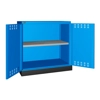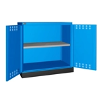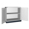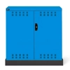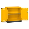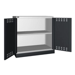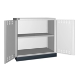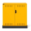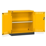 BREVETTATO. Per lo stoccaggio di prodotti inquinanti l'ambiente come vernici, solventi, fitofarmaci e altri prodotti chimici.Solida struttura in lamiera di metallo. Porte a battente fessurate, dotate di serratura a chiave. Profili a cremagliera per l’inserimento di piani opzionali. n.1 piano fessurato, regolabile in altezzan.1 vasca stagna esterna raccolta liquidi. La vasca è idonea a liquidi infiammabili delle categorie GHS 1 - 3 e liquidi inquinanti per le acque delle categorie GHS 1 - 4. Capacità massima della vasca 59 litri.Due intagli sulla lamiera, nel retro, permettono all’occorrenza di creare dei fori passacavo.