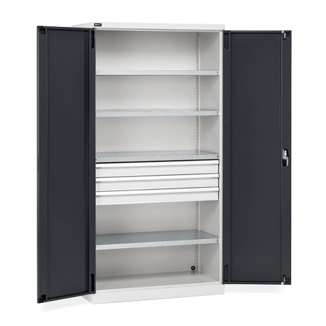 n.3 cassetti ad estrazione semplice n.4 piani fessurati regolabili in altezza