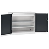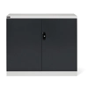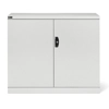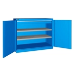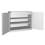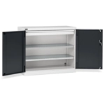 Solida struttura in lamiera di metallo. Porte a battente, dotate di serratura a chiave. Profili a cremagliera per l’inserimento di piani opzionali. n.1 cassetto ad estrazione telescopica H85 mm. (frontalino H100mm.). n.2 piani fessurati regolabili in altezza. Due intagli sulla lamiera, nel retro, permettono all’occorrenza di creare dei fori passacavo.