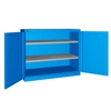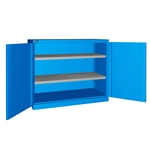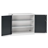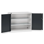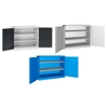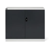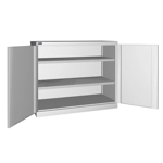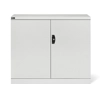 Solida struttura in lamiera di metallo. Porte a battente, dotate di serratura a chiave. Profili a cremagliera per l’inserimento di piani opzionali. n.2 piani fessurati regolabili in altezza. Due intagli sulla lamiera, nel retro, permettono all’occorrenza di creare dei fori passacavo.
