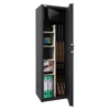 CARATTERISTICHE TECNICHE4 RIPIANI E 5 POSTI FUCILEStruttura in acciaio di spessore 2 mm. verniciato a polveri di colore grigio antracite metallizzato e fori passanti sulla parete posteriore (n.3 da 8 mm. per il fissaggio a muro e n.2 da 6 mm. per il fissaggio dell'eventuale paratia (perl'eventuale trasformazione nel modello modulare portaoggetti)Sportello in acciaio di spessore 3 mm. verniciato a polveri di colore grigio antracite metallizzato, a battuta su tre lati e lato cerniera sottosquadro contro lo strappoSerratura a doppia mappa a 2 mandate, 3 punti di chiusura e 6 gorgesCopertura del meccanismo di chiusura in acciaio di spessore 2 mm. verniciato a polveri di colore grigio antracite metallizzatoChiave a doppia mappa in ottone nichelato e logo Viro art. 1.079 con doppia estrazione, n°2 chiavi in dotazionen°4 catenacci in acciaio nichelato, rotanti (antitaglio), su tre lati Ø24 mm. (2 in orizzontale +1 in alto +1 in basso)Base appoggia-calcio in polietilene espanso di colore nero e spessore di circa 10 mm.Appoggia canna in polietilene espanso antigraffio di colore nero e spessore di circa 55 mm. che garantiscono il posizionamento di fucili a canna doppia o singola anche dotati di ottica. Gli appoggi canna sono forniti con biadesivo già applicato. Fornito un appoggio canna da 5 posti fucile posizionabile sulla parete posteriore.Kit ripiani composto un sostegno laterale, un sostegno centrale e 4 ripiani in acciaio di spessore 1 mm. verniciati a polveri di colore grigio RAL 7032 bucciato. I ripiani hanno una portata fino a 15 Kg. ciascuno e sono posizionabili a scelta dell'utente: la distanza minima tra due ripiani è di circa 11,5 cm. Le dimensioni dei ripiani 24x29 cm. sono idonee a riporre anche cartucciere e binocoli. Il montaggio dei ripiani, a cura del cliente, può essere eseguito facilmente seguendo le istruzioni riportate nella nota di installazione in dotazione.Tesoretto portamunizioni/portaoggetti dotato di serratura di chiusura in lega di zama cromata a 5 lamelle fornita con n°2 chiavi in ottone nichelato e medaglia plastificata art. 1.046.A. N.B.: la cerniera del tesoretto è interna. I RIPIANI SONO ORDINABILI ANCHE COME RICAMBI ARTICOLO 1.4430.0447