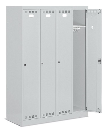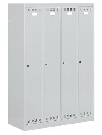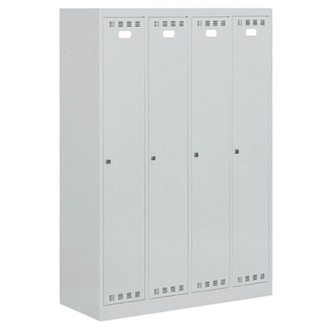 Realizzato in lamiera verniciata. Adatto per diversi ambienti: aziendali, sanitari, sportivi, scolastici. n.4 scomparti con piano regolabile in altezza nella parte superiore, con possibilità di inserimento di borse, zaini, caschi. Porte a battente, dotate di un porta etichetta per l’identificazione personale. Porte con fessure per favorire la circolazione dell’aria. Porte con chiusura a cilindro con chiave. Piedini e tetto inclinato acquistabili a parte.