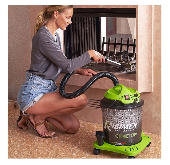 Aspiracenere elettrico CENETOP - Serie PRO - Codice PRCEN012.Aspiratore innovativo munito di un pulsante di scuotimento pneumatico che permette la pulizia del filtro assicurando l'aspirazione continua.Funzione SOFFIAGGIO.Caratteristiche tecnicheMotore 230 V~50 Hz - 1200 W. Depressione: 17 Kpa.Filtro HEPA intercambiabile e lavabile.Prefiltro antistatico autoestinguente.Interruttore ON/OFF sulla parte superiore del serbatoio.Bidone 18 L in metallo laccato. Impugnatura per il trasporto.Tubo flessibile metallo 1,30 m e lancia metallica 20 cm.Spazzola orientabile in plastica con setole in nylon.Carrello porta accessori con ruote.
