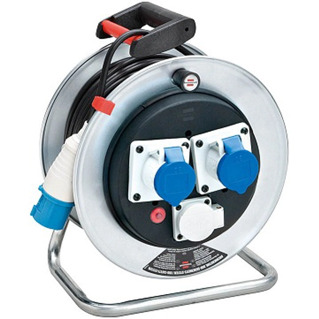 Avvoolgicavo compatto Garant® SK CEE 2 IP 44 33 MT. Per l'utilizzo all'aperto, IP 44. Corpo del tamburo in lamiera d'acciaio zincata antiruggine, collocato su supporto metallico. Maniglia ergonomica con asse di contenimento del cavo per una perfetta guida del cavo in fase di avvolgimento e svolgimento. Protezione antisurriscaldamento, spia di controllo in caso di surriscaldamento e sovraccarico. Cavo: H07RN-F 3G2,5Qualità cavo: Cantiere