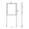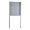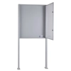 Bacheca porta avvisi maxi SB3. Bacheca porta avvisi di grandi dimensioni con pali autoportanti e profili in alluminio e porta in plexiglass trasparente, munita di doppia chiave e magneti. Soluzione ideale per aziende, scuole, ospedali, spazi urbani, per l'affissione di avvisi di piccolo e grande formato. La qualità dei materiali, le caratteristiche tecniche ed il tettuccio parapioggia, la rendono resistente agli agenti atmosferici, conservando un aspetto estetico durevole nel tempo.