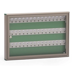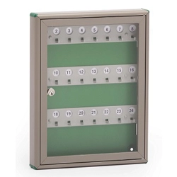 Bacheca portachiavi SB2 custodisce le chiavi in modo ordinato, sicuro e di facile controllo.Al fondo vengono applicati i ganci numerati progressivamente sui quali poter appendere le chiavi.La sua struttura custodisce il contenuto da spruzzi d’acqua e da polveri.Grazie alla qualità dei materiali e alle caratteristiche tecniche, è resistente agli agenti atmosferici, mantenendo un aspetto estetico durevole nel tempo.CaratteristicheFondo in lamiera zincata e ricoperta in PVC al quale vengono appesi i ganci numerati progressivamente (24 posti).Profilo speciale realizzato in alluminio, verniciato colore bronzo/oro con spigoli arrotondati.Porta a battente in plexiglass trasparente spessore 3 mm.Codice Silmec 40-211.9006