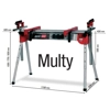 Art. Femi 7.13.36.47. Banchetto Multy Art. 360 FEMI munito di attacchi universali per troncatrici e segatrici Femi e di 3 prese di corrente posizionate sulla parte frontale del banco. Comodo e versatile nel taglio di pezzi di grandi dimensioni. Banco pieghevole “MULTY” per articoli 780XL-782XL-783XL-784XL-NG160-NG120XL-785XL-ABS 105-ABS NG160-ABS NG120. Caratteristiche tecnicheStruttura in profilato di alluminio robusta e leggera.Set di staffe per il fissaggio rapido di troncatrici/segatrici.Possibilità di collegamento di tre elettroutensili. Appoggi laterali estensibili regolabili in altezza ed in lunghezza. Altezza di lavoro regolabile su tre diverse posizioni (mm. 630 - 770 - 830) grazie alle gambe telescopiche.Gambe telescopiche e ripiegabili.