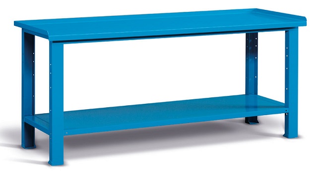 Banco Work in lamiera di acciaio verniciato. Completo di:n.1 ripiano regolabile in altezza, che funge anche da rinforzo per il banco, portata 250 Kg. Piano in acciaio spessore 3 mm., con tre bordini rialzati. Gambe fisse (non regolabili). FORNITO SMONTATOAl banco possono essere aggiunti cassettiere, porte, pareti forate. Disponibile anche nella versione grigio RAL7035+RAL7016 (FBG01S2000F00PD)Disponibile anche nella versione con piano Multiplex sp.30 mm. (FBG02S2000F0004)EX CODICE IDEAONE06088