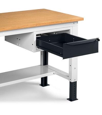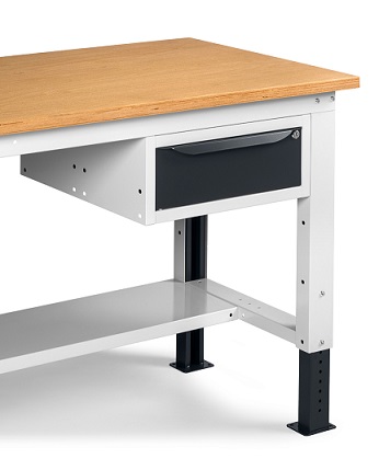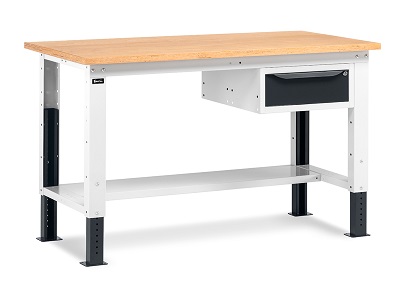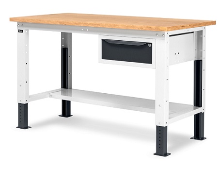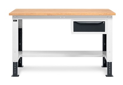 Banco Work Up 1501 in lamiera di acciaio verniciato. Completo di: n.1 semipiano n.1 cassetto L500mm. x H150mm. Piano in Multiplex spessore 30 mm.Gambe regolabili in altezza.Passo fori gambe 25 mm. FORNITO SMONTATODisponibile anche nella versione blu RAL5012