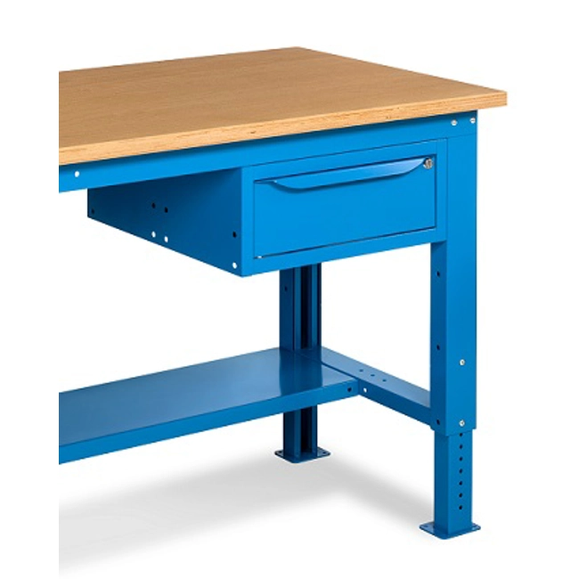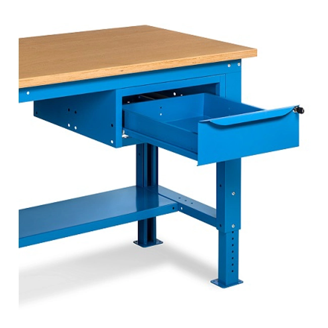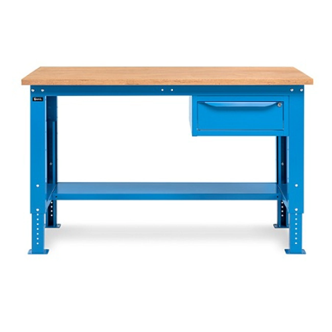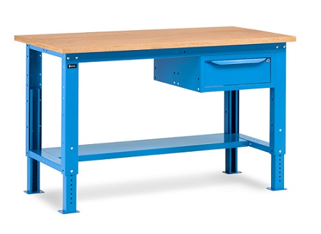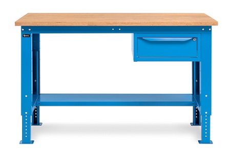 Banco Work Up 1502 in lamiera di acciaio verniciato. Completo di:n.1 semipianon.1 cassetto L500mm. x H150mm.Piano in Multiplex spessore 30 mm.Gambe regolabili in altezza.Passo fori gambe 25 mm.FORNITO SMONTATODisponibile anche nella versione grigio RAL7035+RAL7016