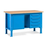 Banco Work Up 1512 in lamiera di acciaio verniciato. Completo di: n.1 elemento da 629x607x570H mm. con n.1 cassetto H150 mm. e n.1 porta H310 mm., con cerniera sinistra n.1 elemento da 629x607x570H mm. con n.1 cassetto H150 mm. e n.1 porta H310 mm., con cerniera destra Piano in Multiplex spessore 30 mm. Gambe regolabili in altezza. Passo fori gambe 25 mm. FORNITO SMONTATODisponibile anche nella versione grigio RAL7035+RAL7016