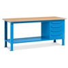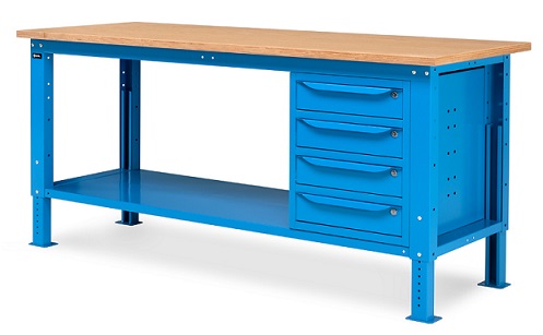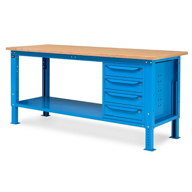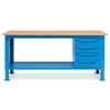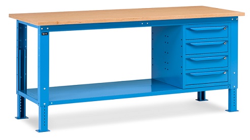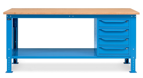Banco Work Up 2003 in lamiera di acciaio verniciato. Completo di:n.2 semipianin.1 cassettiera da 500x607x570Hmm. a 4 cassetti H105mm.Piano in Multiplex spessore 30 mm.Gambe regolabili in altezza.Passo fori gambe 25 mm.FORNITO SMONTATODisponibile anche nella versione grigio RAL7035+RAL7016