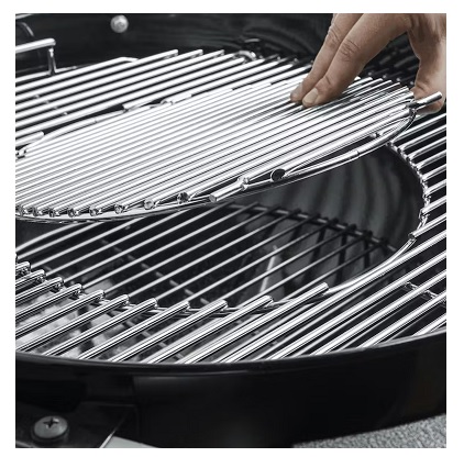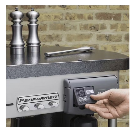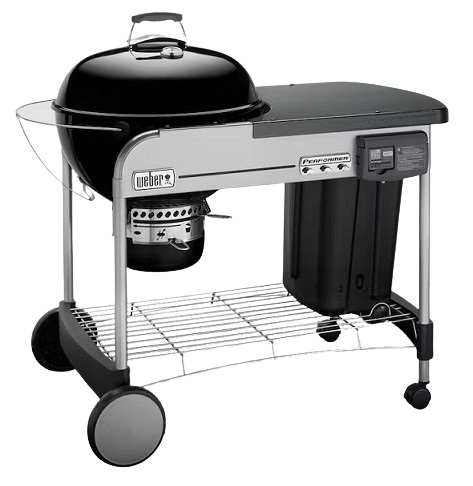 Barbecue a carbone Weber Performer Deluxe Gourmet GBS Ø 57 cm. - cod. 15501053. Accendi la fiamma e passa le pinze alla nuova generazione di barbecue a carbone. Con la semplice pressione di un pulsante, il carbone è incandescente e la griglia pronta per ricevere le tue prelibatezze. Tu non devi fare altro che sederti e ammirare il tuo barbecue a carbone Performer Deluxe Gourmet GBS in azione. Caratteristiche Sistema di accensione piezoelettronica Touch-N-GO. Griglia di cottura incernierata in acciaio inox Gourmet BBQ System. Griglia focolare in acciaio. Braciere e coperchio in acciaio smaltato. Termometro integrato sul coperchio. Ripiano da lavoro in metallo verniciato. Carrello aperto con ripiano grigliato. Maniglia in nylon rinforzato con fibre di vetro. Valvola d’aerazione in alluminio. Sistema di pulizia One-Touch in acciaio inox. Raccoglicenere in alluminio ad alta capacità, rimovibile. Supporto per il sostegno del coperchioTuck-Away integrato per appoggiare il coperchio mentre si controlla il cibo. Recipiente per lo stoccaggio del carbone, protetto dalle intemperie. Timer di cottura con LCD retroilluminato e removibile.