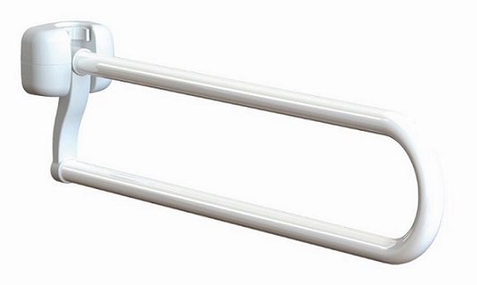 Barra di sostegno realizzata in acciaio con finitura laccata a polvere epossidica - Codice articolo EH-NWA-80-PCX. Ribaltabile per ridurre l'ingombro.Completa di piastre di fissaggio.E' consigliata l'installazione vicino al water o al lavabo come aiuto per sedersi o alzarsi. Predisposto per il portarotolo EH-NWA-PH-PCX.