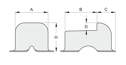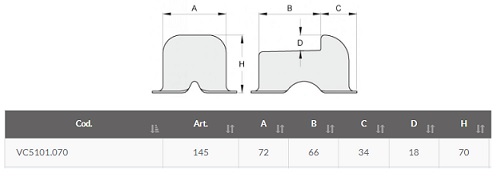 Battente a terra per cancelli a 2 ante - Articolo 145. Realizzato in acciaio zincato. Per cancelli a due ante. Fissaggio a terra ad annegamento nel cemento o tramite viti. DImensioni 100x72x70 mm. Dimensioni come da schema.