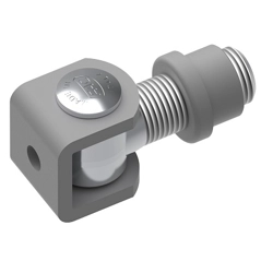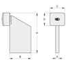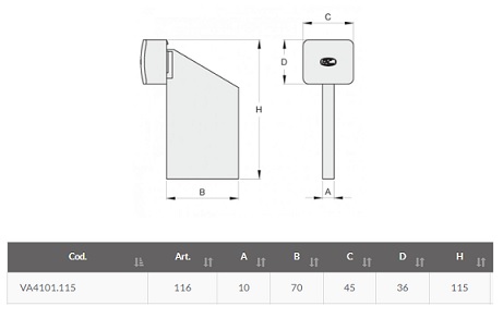 Battente di arresto a saldare - Articolo 116. Realizzato in acciaio zincato. Per portoni scorrevoli. Con tappo in plastica per smorzamento acustico. Fissaggio a saldatura. Dimensioni come da schema.