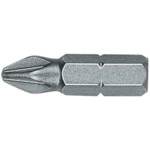 Taglio a croce Pozidriv. Con tempra speciale che garantisce una durezza di HRC 62-64 per momenti torcenti più elevati e lunga durata del bit. Lunghezza totale mm 25.