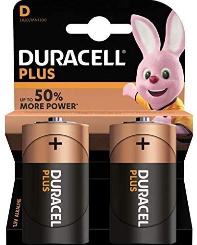 Batterie Duracell Plus D - Codice D.Energia fino al 50% di extra durata.Le batterie Duracell Plus D sono batterie alcaline multifunzionali adatte per i dispositivi ad uso quotidiano che richiedono energia affidabile, i risultati possono variare a seconda del dispositivo e del tipo di utilizzo.La tecnologia Duracell preserva l'energia delle batterie fino a 10 anni, se correttamente conservate nella confezione.Il 98% delle confezioni in carta è realizzata con materiali riciclati.Confezione da 2 pz.