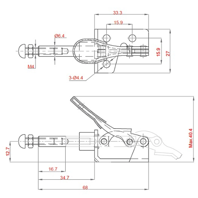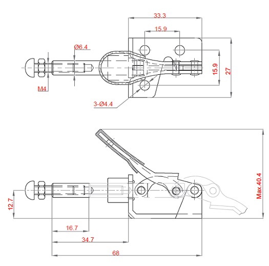 Bloccaggio a spinta - spintore 16,7 mm. - portata 50 Kg. - Articolo Clamptek CH-301-AM.