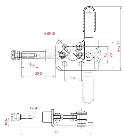 Bloccaggio a spinta - spintore 16,4 mm. - portata 40 Kg. (Sx) - Articolo Clamptek CH-301-CL.