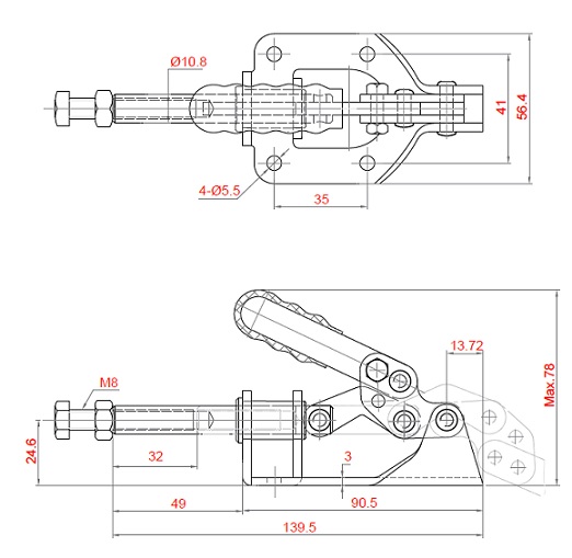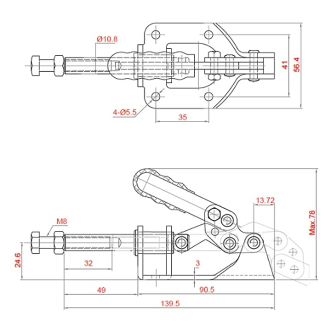 Bloccaggio a spinta - spintore 32 mm. - portata 140 Kg. - Articolo Clamptek CH-302-FM.