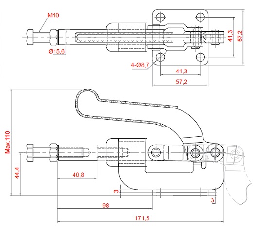 Bloccaggio a spinta - spintore 40,8 mm. - portata 370 Kg. - Articolo Clamptek CH-36010M.