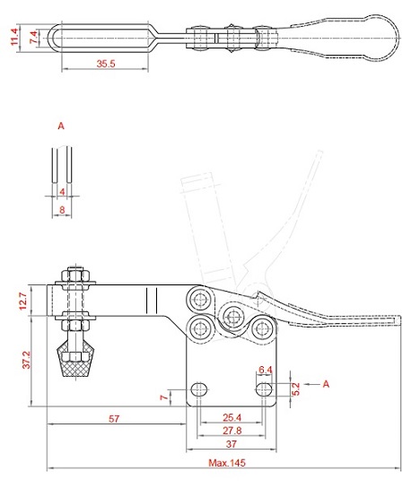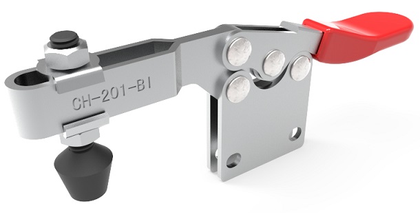 Bloccaggio orizzontale - base dritta - braccio regolabile - portata 90 Kg. - Articolo Clamptek CH-201-BI. Sfruttando le caratteristiche geometriche e i vantaggi meccanici, Il meccanismo a leva, amplifica la bassa forza imputata dall’operatore in un’elevata capacità di serraggio.Per realizzare questo, è necessario posizionare il bloccaggio al di sopra del proprio asse principale. Viene così garantita un’ottima tenuta e impedita l’apertura durante il lavoro.Queste caratteristiche rendono i bloccaggi a leva adatti a numerose applicazioni specialmente in operazioni ripetitive.L'intera gamma presenta un design della struttura e un'impugnatura ergonomica, che permettono un'elevata funzionalità.