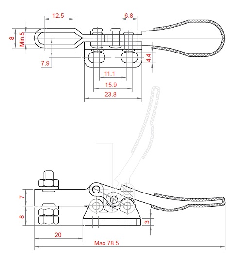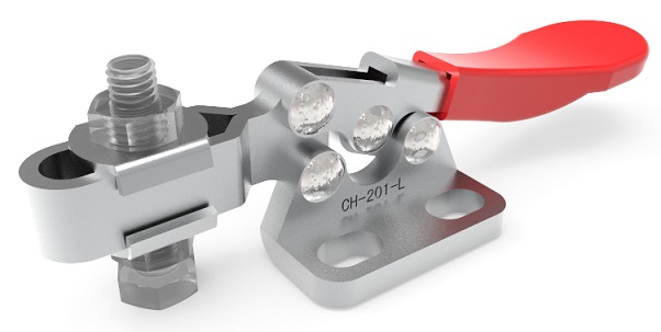 Bloccaggio orizzontale - base piatta SX - braccio regolabile - portata 30 Kg. - Articolo Clamptek CH-201-L. Sfruttando le caratteristiche geometriche e i vantaggi meccanici, Il meccanismo a leva, amplifica la bassa forza imputata dall’operatore in un’elevata capacità di serraggio.Per realizzare questo, è necessario posizionare il bloccaggio al di sopra del proprio asse principale. Viene così garantita un’ottima tenuta e impedita l’apertura durante il lavoro.Queste caratteristiche rendono i bloccaggi a leva adatti a numerose applicazioni specialmente in operazioni ripetitive.L'intera gamma presenta un design della struttura e un'impugnatura ergonomica, che permettono un'elevata funzionalità.