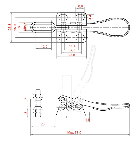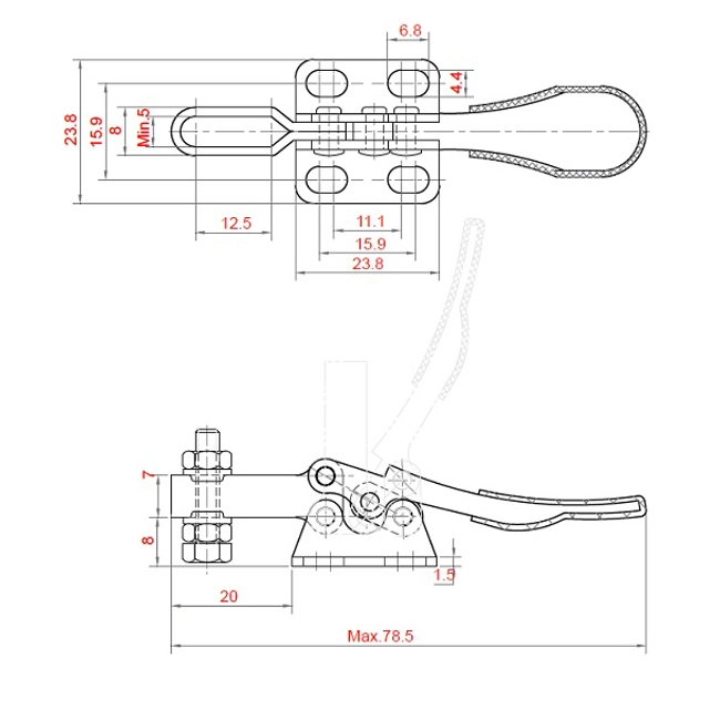 Bloccaggio orizzontale - base piatta - braccio regolabile - portata 30 Kg. - Articolo Clamptek CH-201-SS - VERSIONE INOX. Sfruttando le caratteristiche geometriche e i vantaggi meccanici, Il meccanismo a leva, amplifica la bassa forza imputata dall’operatore in un’elevata capacità di serraggio.Per realizzare questo, è necessario posizionare il bloccaggio al di sopra del proprio asse principale. Viene così garantita un’ottima tenuta e impedita l’apertura durante il lavoro.Queste caratteristiche rendono i bloccaggi a leva adatti a numerose applicazioni specialmente in operazioni ripetitive.L'intera gamma presenta un design della struttura e un'impugnatura ergonomica, che permettono un'elevata funzionalità.