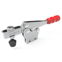 Bloccaggio orizzontale - base dritta - braccio regolabile - portata 230 Kg. - Articolo Clamptek CH-225-DI. Sfruttando le caratteristiche geometriche e i vantaggi meccanici, Il meccanismo a leva, amplifica la bassa forza imputata dall’operatore in un’elevata capacità di serraggio.Per realizzare questo, è necessario posizionare il bloccaggio al di sopra del proprio asse principale. Viene così garantita un’ottima tenuta e impedita l’apertura durante il lavoro.Queste caratteristiche rendono i bloccaggi a leva adatti a numerose applicazioni specialmente in operazioni ripetitive.L'intera gamma presenta un design della struttura e un'impugnatura ergonomica, che permettono un'elevata funzionalità.