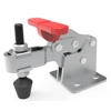 Bloccaggio Verticale - base piatta - braccio regolabile - portata 330 Kg. - Articolo Clamptek CH-13008. Sfruttando le caratteristiche geometriche e i vantaggi meccanici, Il meccanismo a leva, amplifica la bassa forza imputata dall’operatore in un’elevata capacità di serraggio. Per realizzare questo, è necessario posizionare il bloccaggio al di sopra del proprio asse principale. Viene così garantita un’ottima tenuta e impedita l’apertura durante il lavoro.Queste caratteristiche rendono i bloccaggi a leva adatti a numerose applicazioni specialmente in operazioni ripetitive.L'intera gamma presenta un design della struttura e un'impugnatura ergonomica, che permettono un'elevata funzionalità.