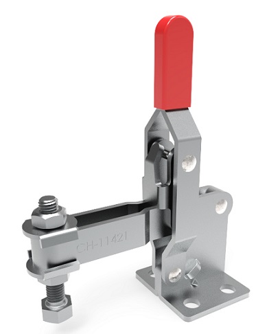 Bloccaggio verticale - base piatta - braccio regolabile - portata 200 Kg. - Articolo Clamptek CH-11421-SS - VERSIONE INOX. Sfruttando le caratteristiche geometriche e i vantaggi meccanici, Il meccanismo a leva, amplifica la bassa forza imputata dall’operatore in un’elevata capacità di serraggio. Per realizzare questo, è necessario posizionare il bloccaggio al di sopra del proprio asse principale. Viene così garantita un’ottima tenuta e impedita l’apertura durante il lavoro.Queste caratteristiche rendono i bloccaggi a leva adatti a numerose applicazioni specialmente in operazioni ripetitive.L'intera gamma presenta un design della struttura e un'impugnatura ergonomica, che permettono un'elevata funzionalità.